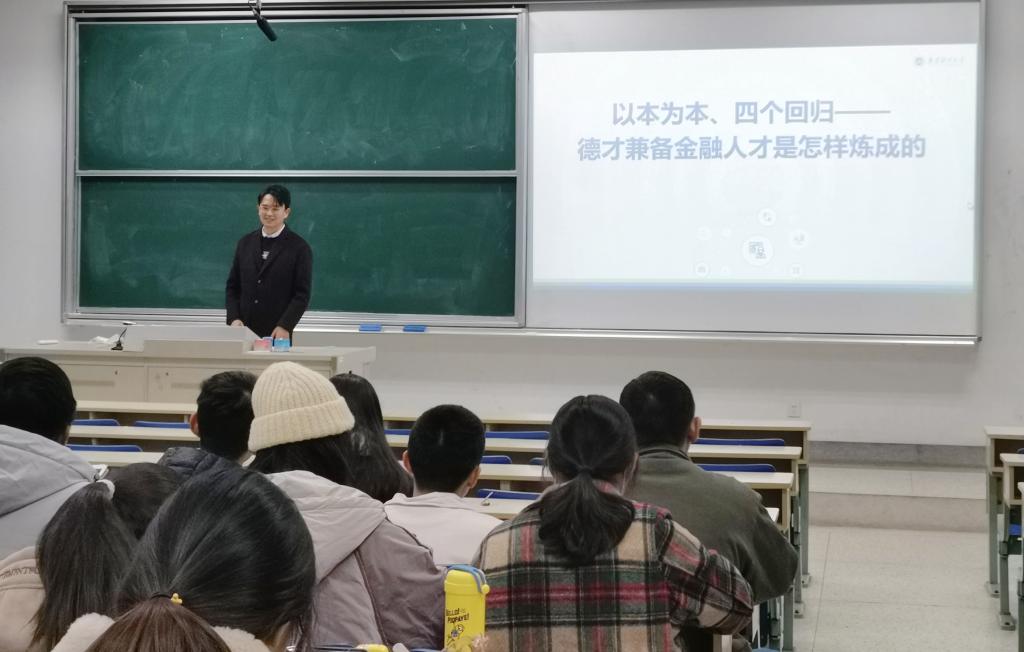 11月30日晚,非凡娱乐官网 金融学本科第三党支部邀请政治辅导员张成院长在德经楼115教室讲授党课,主题为“以本为本,四个回归——德才兼备金融人才是怎样练成的”,本支部全体党员参加。