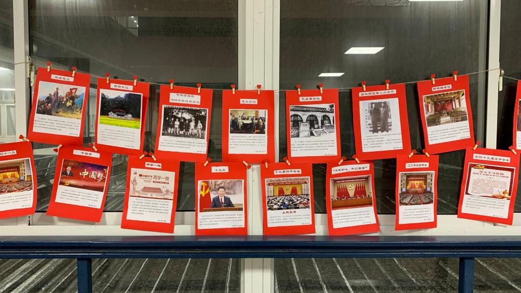 “红色走廊”图片展是以百年来中国共产党领导的、波澜壮阔的中国革命、建设、改革为主线,介绍了1921-2021建党一百年间的重大历史性事件。从中国共产党成立到中共二大,从南昌起义到秋收起义,从西柏坡会议到开国大典,从改革开放到小康蓝图, 一张张丰富翔实的图片,配以事件过程和意义的文字,深刻展示了建党百年来的历史事件,回顾了党的百年奋斗历程,展现了各个历史时期共产党人艰苦卓绝的伟大实践和光辉历程。一幅幅生动鲜红的图片,一段段艰苦卓绝的历史,吸引着大家的目光,同学们深受启发和教育。正在观看图片展的潘萌同学说:通过走廊里展出的图片,我看到了中国共产党百年奋斗的历程,回顾了中国共产党的一段段峥嵘岁月,致敬每一位无私奉献的党员同志。这种图文并茂的形式,也能够让我们更加直观的学习党史、铭记党史。