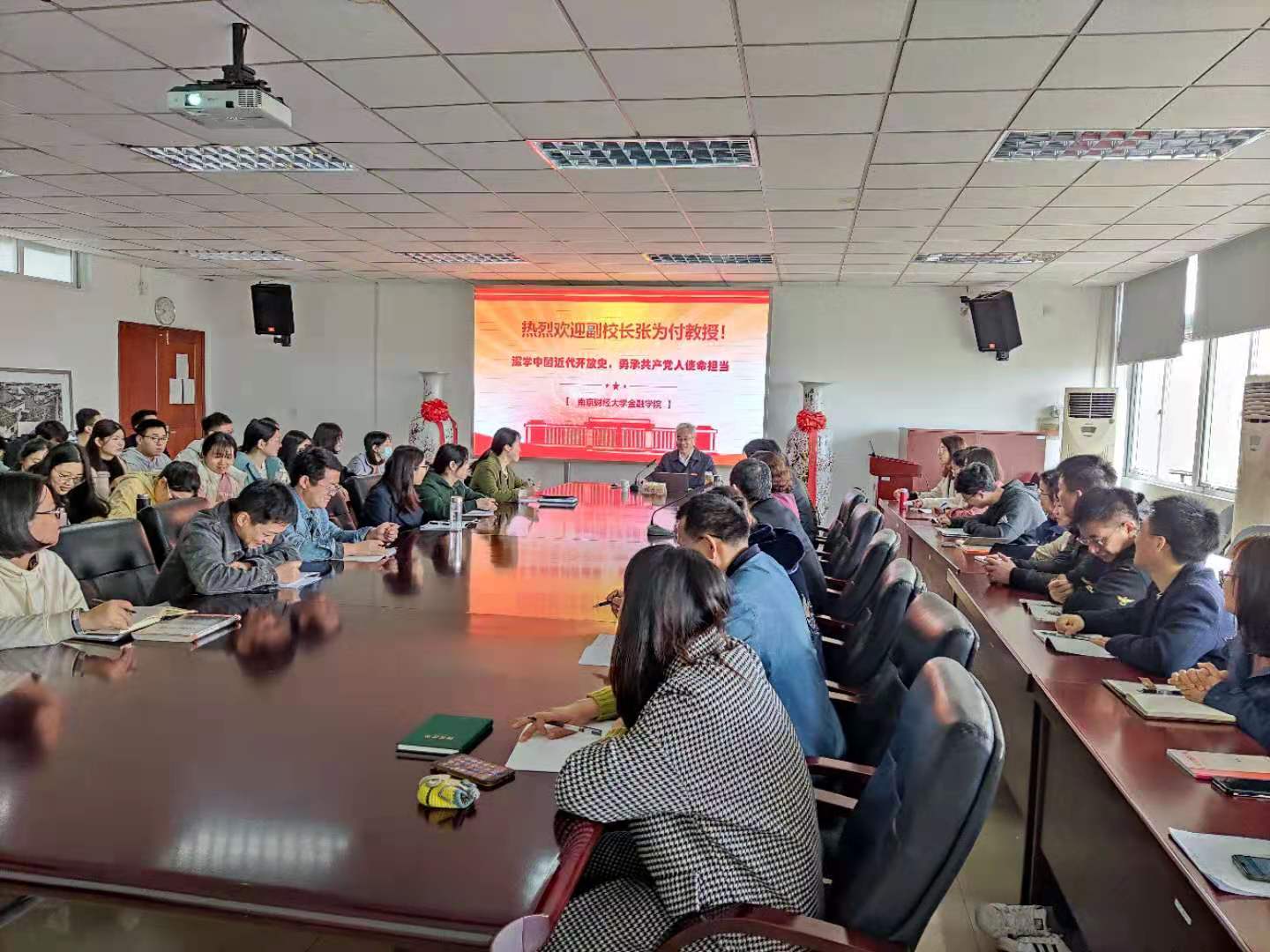 4月8日上午,非凡娱乐官网 党委常委、副校长张为付教授在非凡娱乐官网 508会议室给非凡娱乐官网 青年党员教师和学硕党支部学生上了一次题为“从中国近代开放史,看中国共产党的使命与担当”的党课。非凡娱乐官网 党委书记李玉琴主持,院长张成、副院长郭文旌、党委副书记章冬斌参加党课学习。