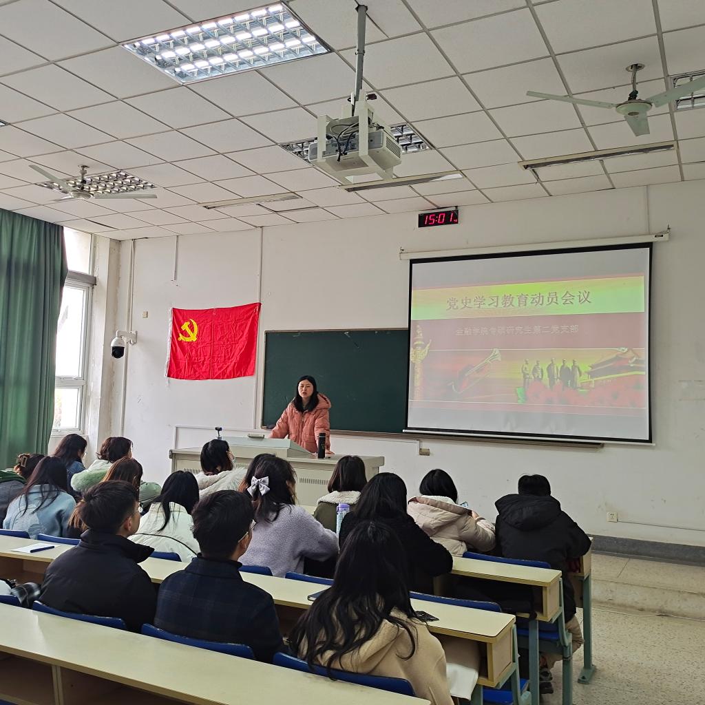 专硕研究生第二党支部在德经楼113开展了党史学习教育动员会,会议由党支部书记查腾飞老师主持。