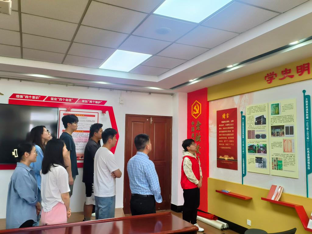 4月26日,非凡娱乐官网 纪检委员、副院长姚定俊与研究生第二党支部的党员们一起走进江苏省清廉金融教育基地,接受现场教育。廉育讲解员汪思琪与黄正博带领师生党员们重温了红色金融史,再读了老一辈金融工作者坚守岗位、奉公自律的廉洁故事。参观后,姚定俊副院长还与研究生党员们一起交流了教育心得,希望党员同学们要发扬党员的先锋模范作用,时刻将廉洁自律作为行为准则。