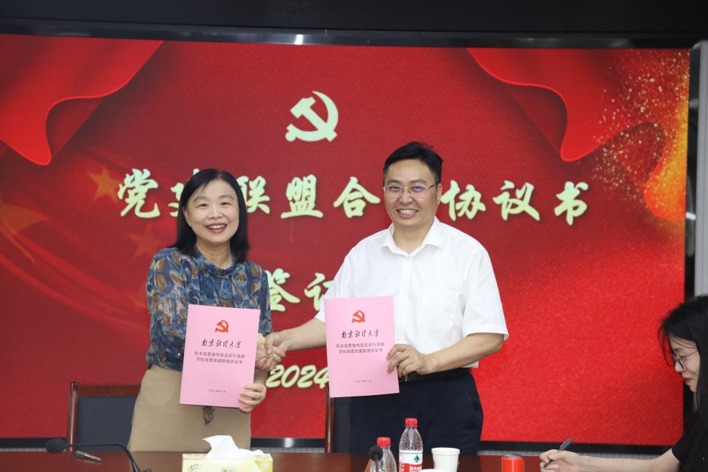 随后,双方签订了党建联盟合作协议。根据协议,党建联盟共建单位将通过政治理论联学、组织生活联过、特色品牌联创、招生就业联拓、思政育人联做、人才工作联动、社会服务联办、考核工作联抓等多种合作方式实现合作共赢,以党建统领助推高水平财经大学建设。