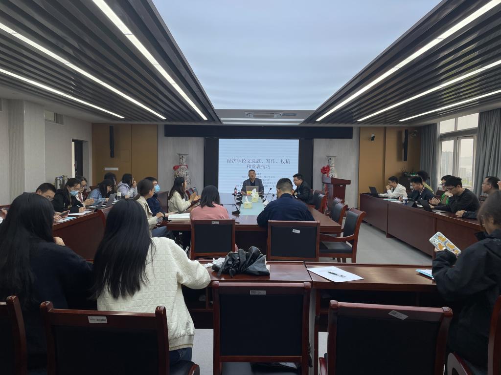 皮教授认为应关注当下热点,选择具有实际应用价值的课题。这样论文的研究结果就能更好地为社会服务,也更容易引起读者的关注。接着他重点对“论文的选题、论文主体部分的撰写和修改”两个学术论文写作最核心的方面做了讲解。他鼓励在场师生多观察生活、提升专业感悟能力,以经济学专业思维方式,关切现实、好奇未来,写出有思想、有故事、有情怀的学术论文。讲座结束后,皮教授对非凡娱乐官网 青年教师提出的问题进行了详细的解答。