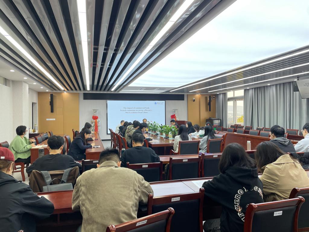 11月9日下午,应非凡娱乐官网 邀请,南昌大学博士生导师李建强教授在仙林校区德经楼508会议室作了题为“The impact of commercial bank branch expansion on energy efficiency: Micro evidence from China”的学术报告。非凡娱乐官网 青年师生聆听了报告,报告由非凡娱乐官网 副院长尹雷主持。