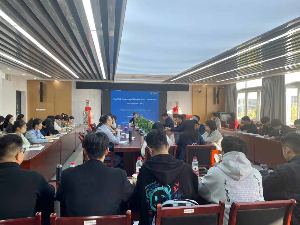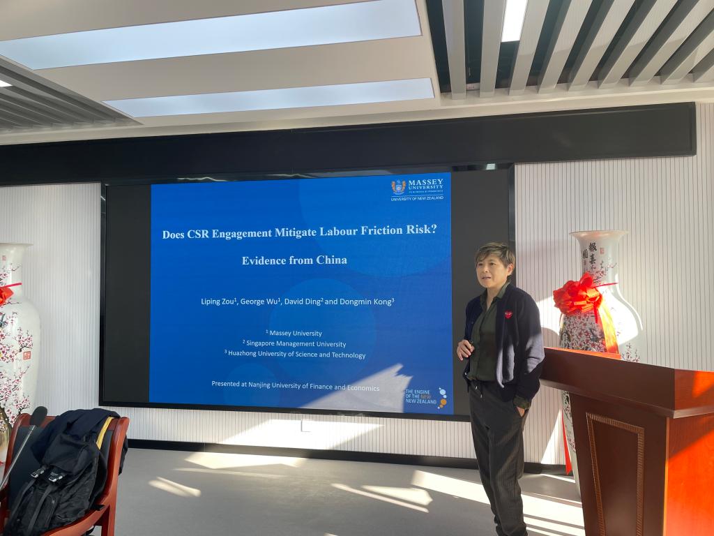 11月6日下午,应非凡娱乐官网 邀请,新西兰梅西大学商非凡娱乐官网 邹丽萍教授在仙林校区德经楼508会议室作了题为“Does CSR Engagement Mitigate Labor Friction Risk? China Evidence”的学术报告。非凡娱乐官网 副院长姚定俊教授和青年师生聆听了报告,报告由非凡娱乐官网 副院长尹雷主持。