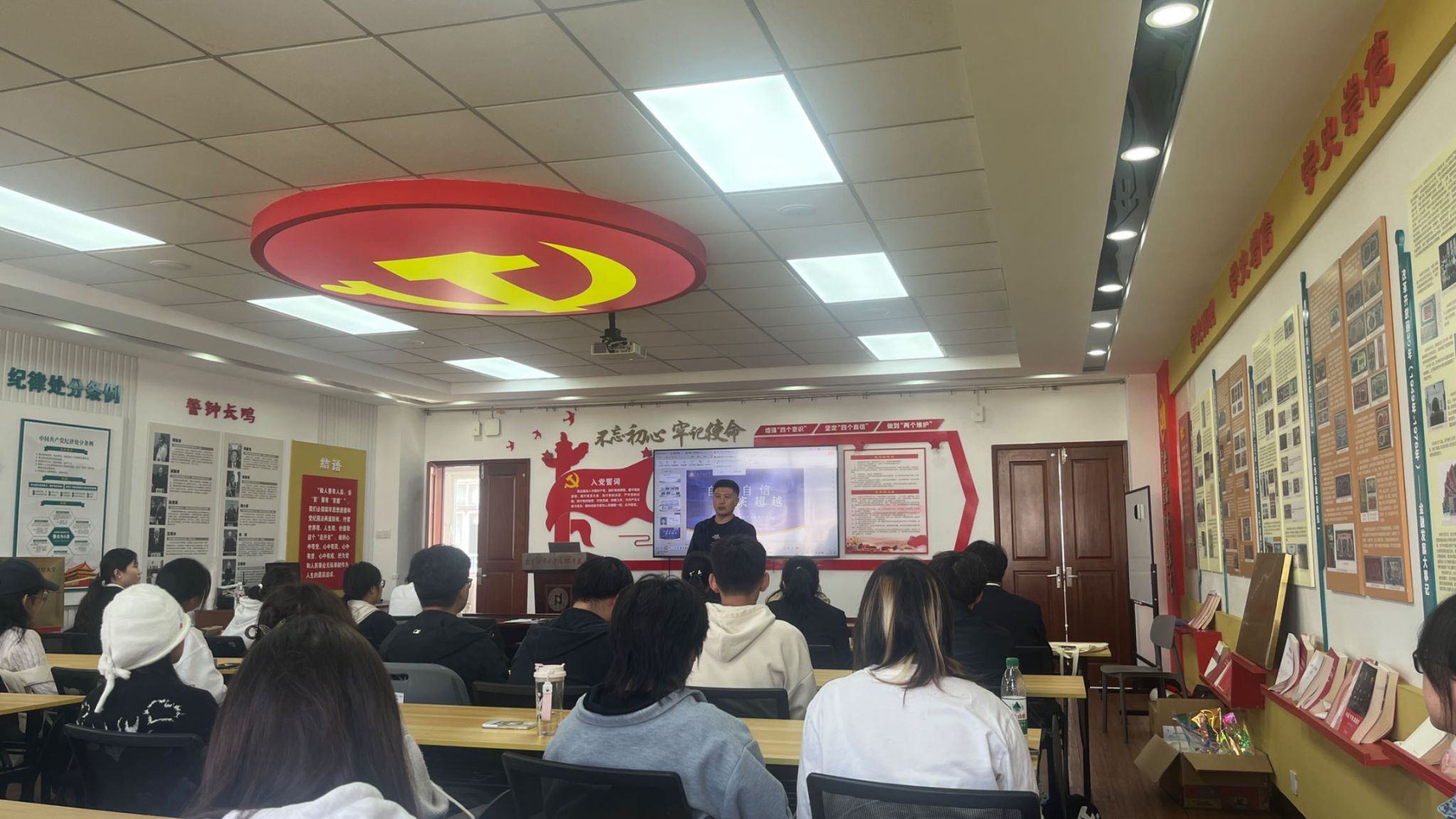 答辩会上,各位选手依次进行了竞选陈述,论述条理清晰,主题明确,围绕政治思想、学业成绩、科研能力、社会实践及志愿服务等多角度展示个人风采。竞选者的精彩演讲和优异表现赢得阵阵掌声。