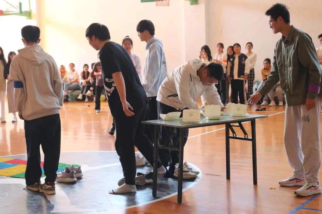 随着运动会开始,活动氛围逐渐升温,参赛同学的运动热情逐渐被点燃。在趣味接力等田径接力跑竞技类体育项目中大家奋勇向前努力冲向终点线;“三二一木头人”、“爱的抱抱”等团体趣味类项目在锻炼身体和愉悦身心的同时让大家感受了一把团队合作的快乐,同学们挥洒汗水,尽展青春风采。