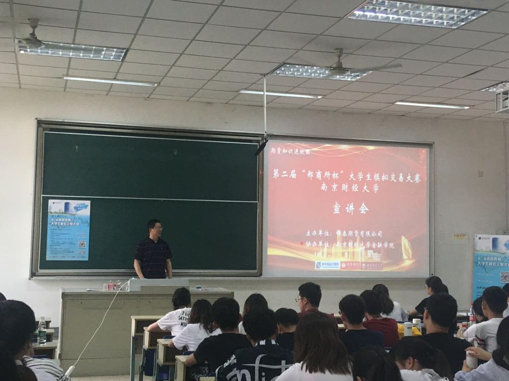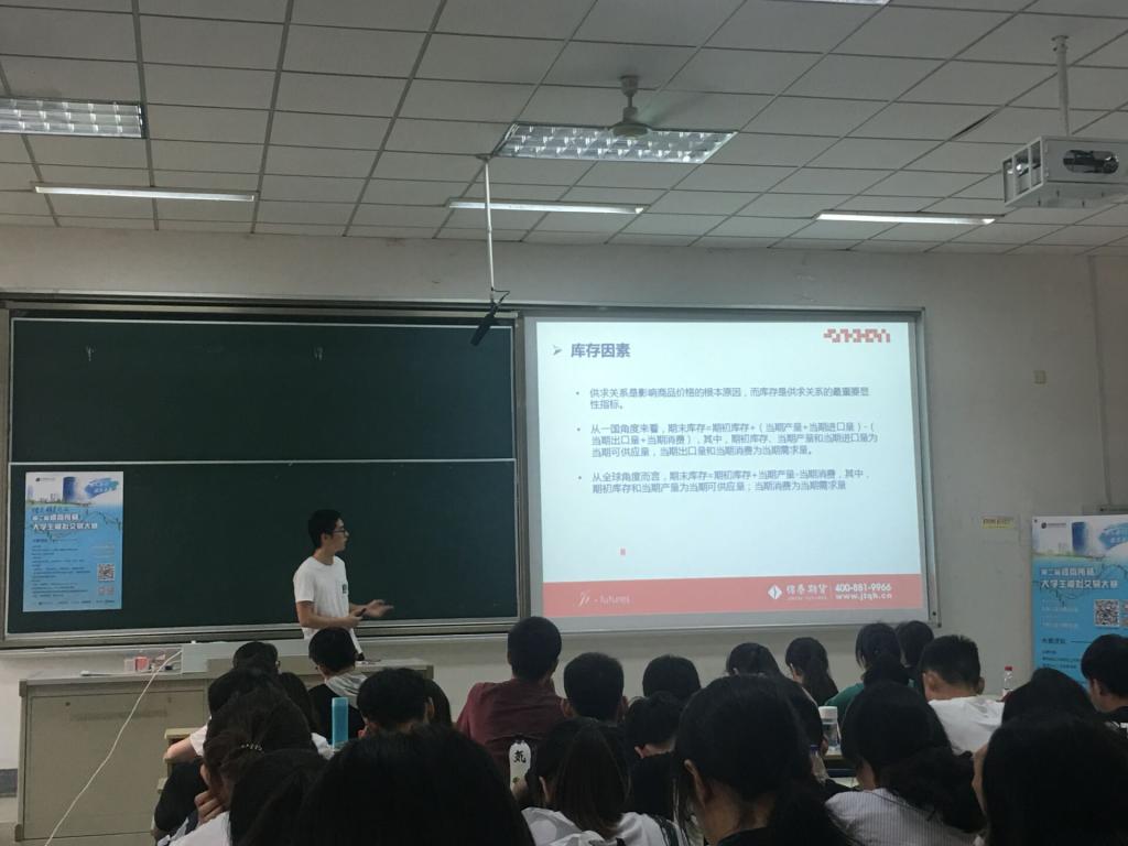 6月5日下午,期货知识进校园暨第二届“郑商所杯”大学生模拟交易大赛宣讲会在仙林校区德经楼117教室成功举行。非凡娱乐官网 投资学系全体学生参加了本次活动,锦泰期货谢景炎老师和俞水祥老师担任本次活动的主讲人。