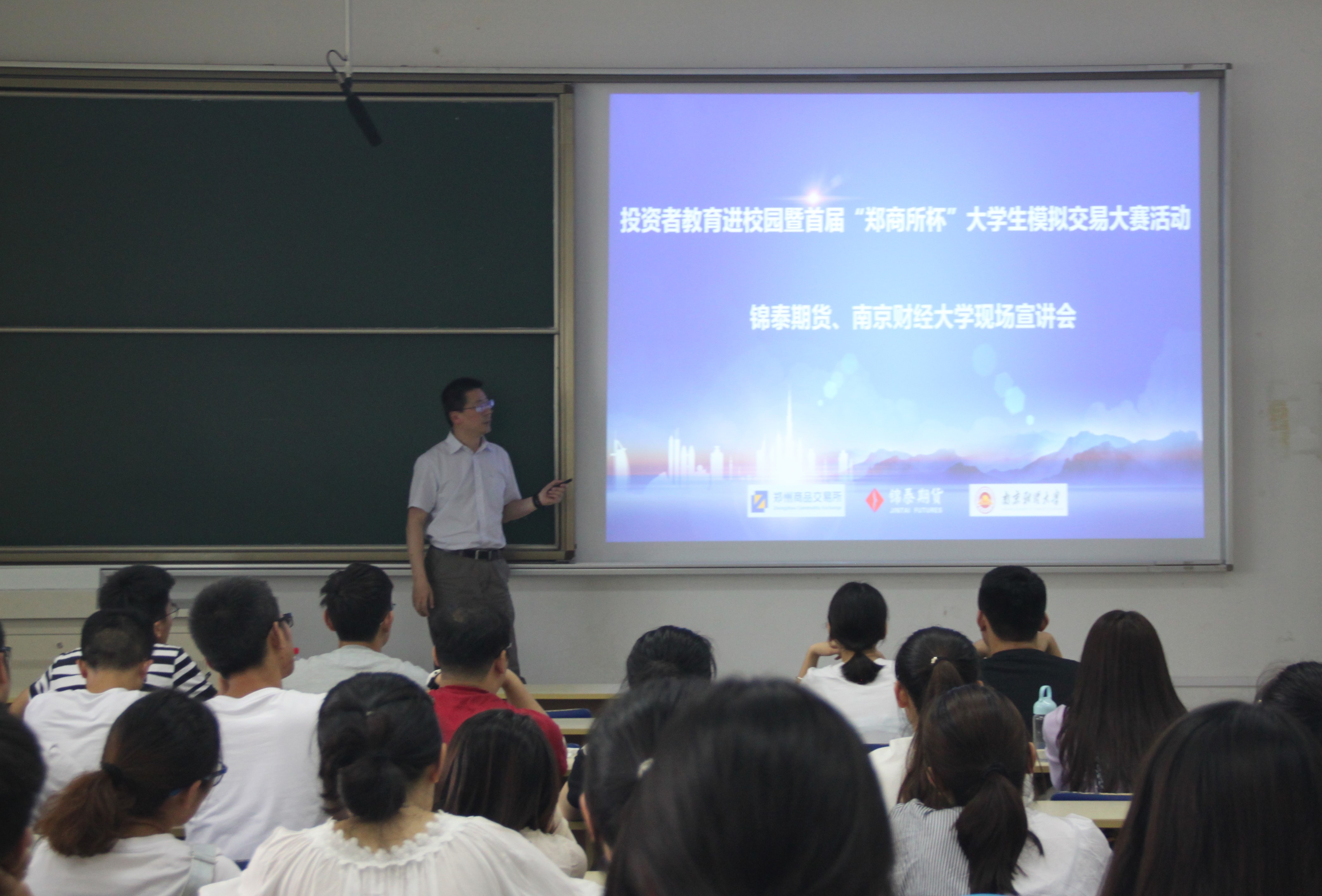 2018年6月15日16时,投资者教育进校园暨首届“郑商所杯”大学生模拟交易大赛南京财经大学讲座在德经楼113教室成功举办。非凡娱乐官网-电子娱乐平台游戏-非凡娱乐官网 部分学生参与了本次讲座,锦泰期货有限公司的谢景炎老师和俞水祥老师担任本次讲座的主讲人。