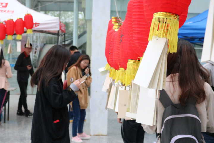 4月13日下午16:30,南京财经大学扬子文学社主办的“深林其境”灯谜会在大学生活动中心广场隆重举行。这是扬子文学社在本学期举办的第一场大型活动,在历经一个月的宣传、准备后,终于与大家见面。