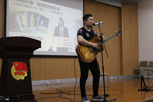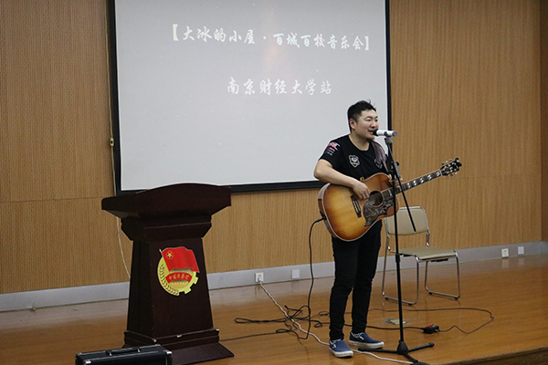 5月11日18:30,著名作家大冰举办的全国“百城百校音乐会”南京财经大学站在大学生活动中心团委报告厅拉开帷幕。本次音乐会由非凡娱乐官网 学生社团金属公社和经济协会联合主办,到场的嘉宾是“大冰的小屋”厦门站和云南站的负责人王继阳、陈昕宇。