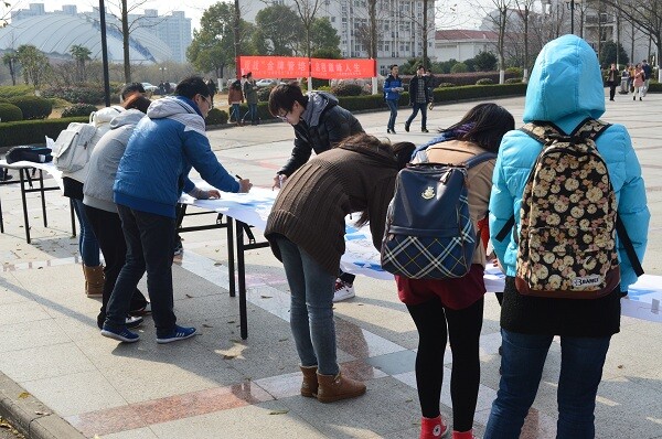 活动伊始,“轻松备考状态在,诚信作答勇过关”的宣传横幅便吸引了众多同学的目光。在深入了解了本次活动举办的意义和目的之后,大家纷纷加入此次活动,拿起笔在宣传条幅上郑重的签上自己的名字,同时宣誓了自己诚信考试的决心。