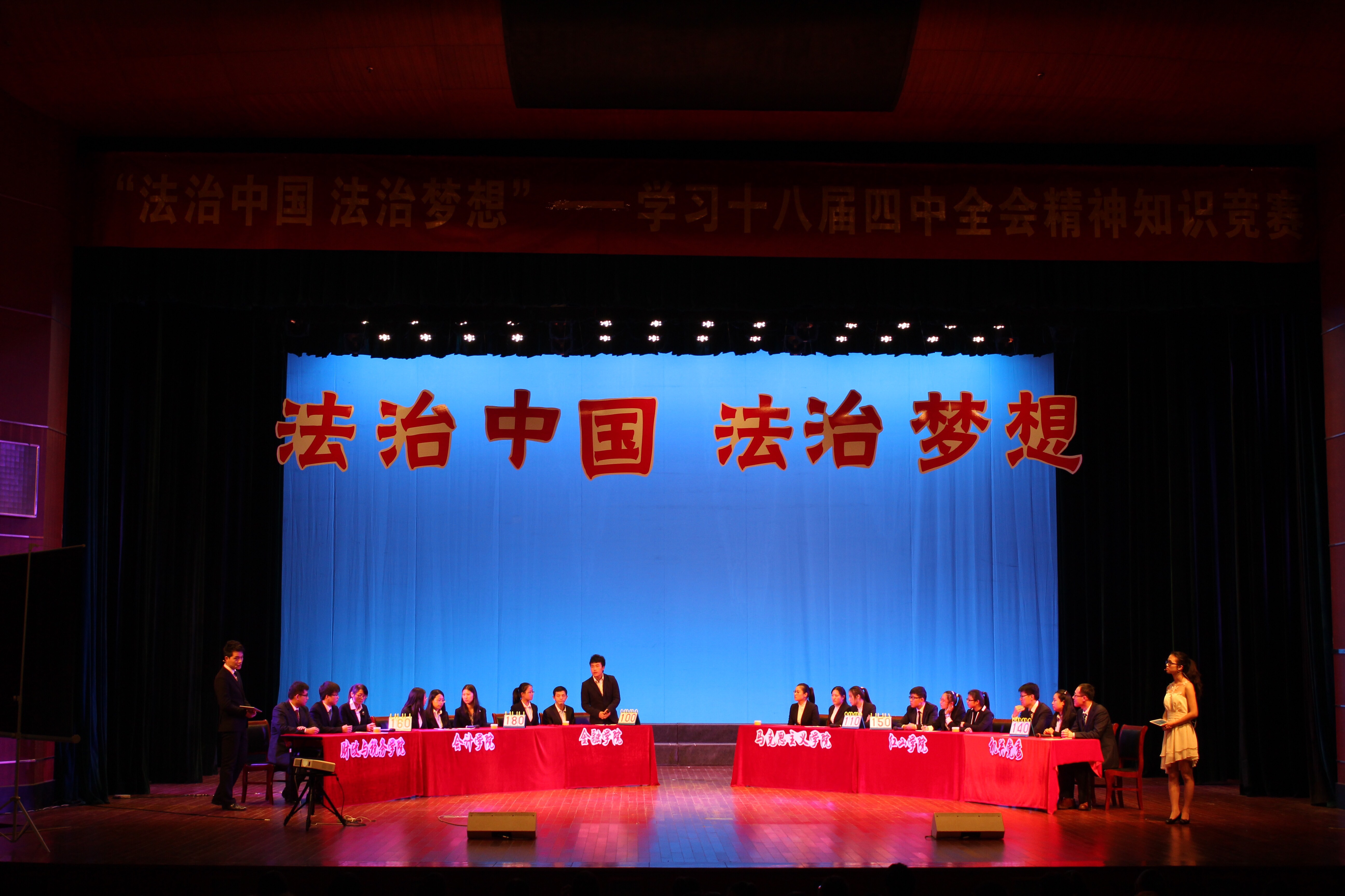 2014年11月27日南京财经大学“法治中国 法治梦想”——学习党的十八届四中全会精神知识竞赛决赛在南京财经大学大学生活动中心礼堂进行。经过初赛20个非凡娱乐官网 、机构代表队的激烈角逐,财经与税务非凡娱乐官网 、会计非凡娱乐官网 、非凡娱乐官网 、马克思主义非凡娱乐官网 、红山非凡娱乐官网 和机关党委六支队伍晋级决赛。