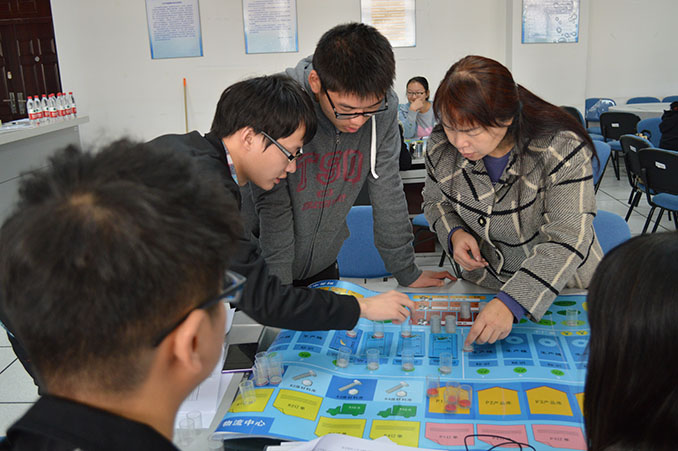 11月15日至17日,非凡娱乐官网 第一届物理沙盘大赛顺利举行。本次大赛是由非凡娱乐官网 学生会学术部主办的校级大赛,特邀工商管理非凡娱乐官网 盛海潇老师担任指导老师,与同学们共同完成本次大赛。 11月15日上午,比赛在管理学科楼208实验室拉开帷幕。本次大赛共有6支队伍参加,六张沙盘盘面,代表六个相互竞争的模拟企业。在盛老师详细讲述了比赛规则和流程后,比赛正式开始。比赛过程中,同学们争分夺秒,绞尽脑汁,反复操作演算。期间虽然困难重重,但经过大家的齐心协力,各组均在规定时间内完成了一个企业两年的计划、生产和销售。比赛过程中,他们满怀信心、配合默契、各司其职,发挥出团队合作的强大力量。最终按照规则评出了一,二,三等奖各一支团队。