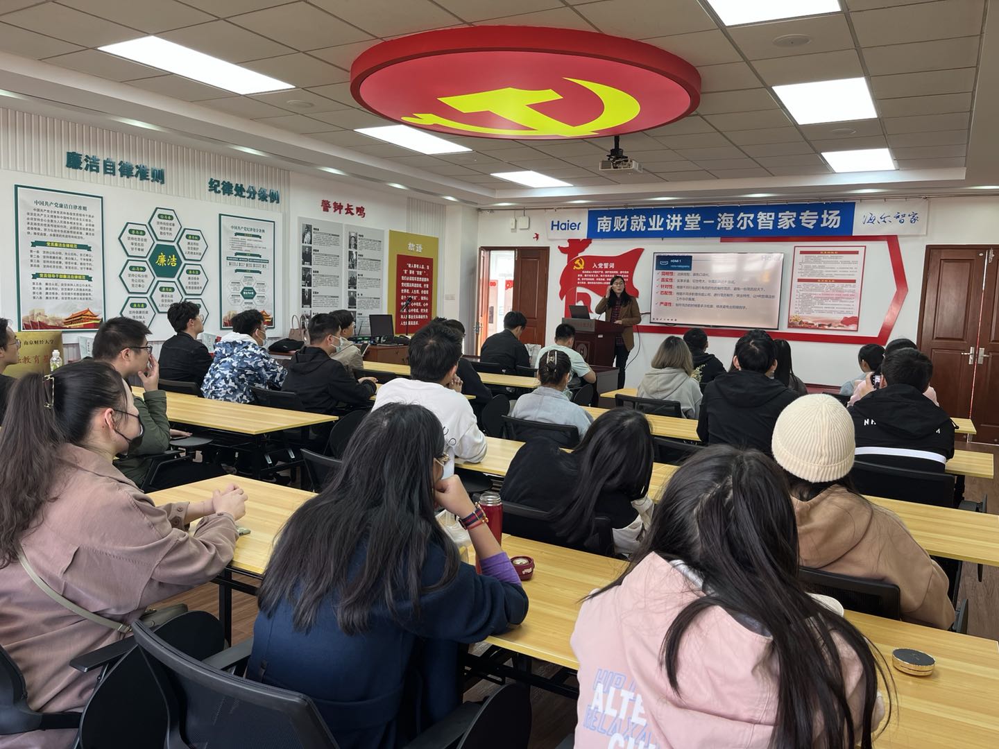 11月19日下午,在德经楼507会议室举办了一场南财就业讲堂——简历、面试指导讲座,此次活动由南财就业指导中心主办,非凡娱乐官网 承办。本次讲座邀请了海尔智家华东&华中大区HR总监涂芳海女士主讲,大三、大四年级的同学到场参加。