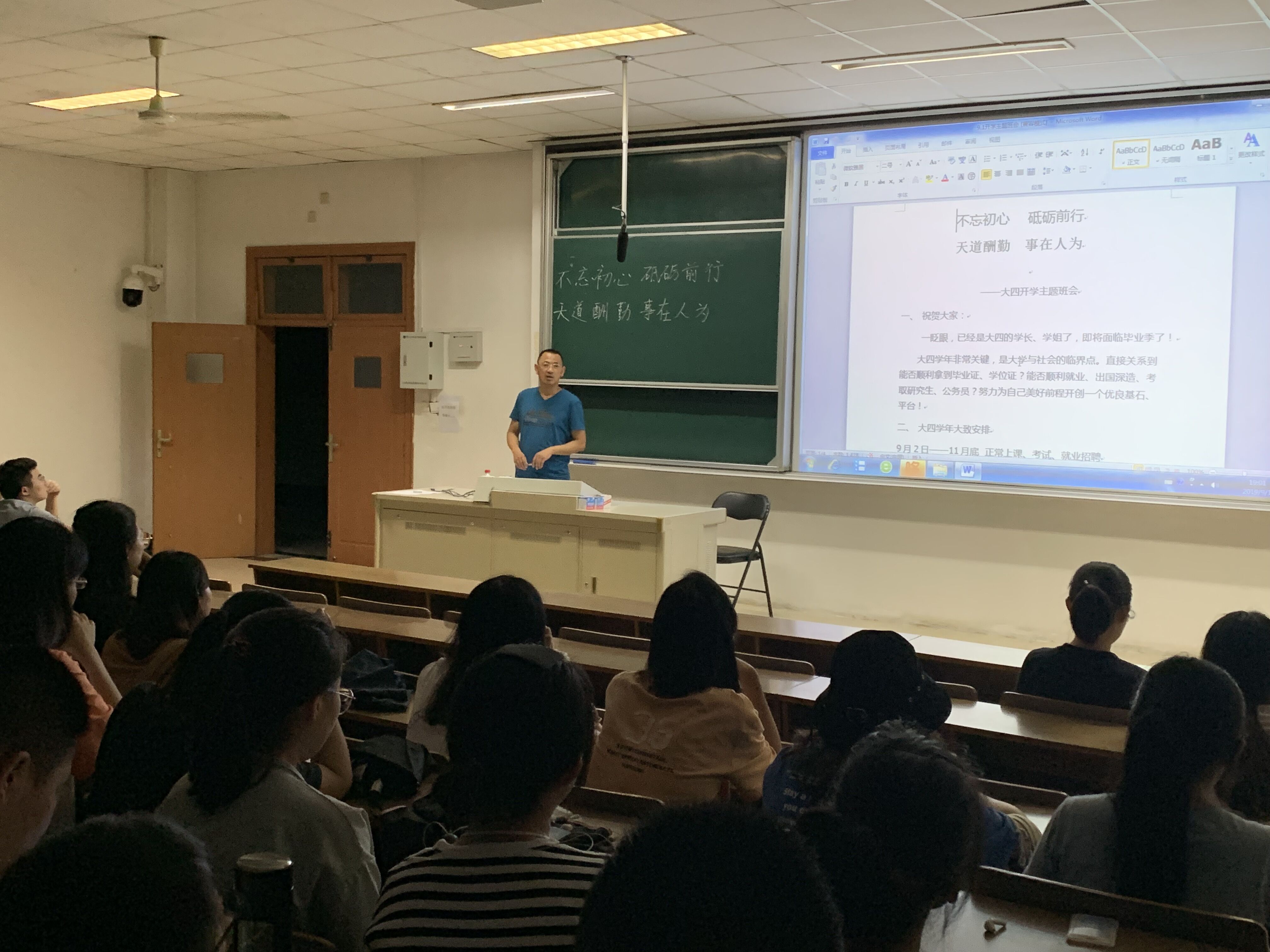 其次,黄老师向同学们讲解了大四学年大致学业安排,使同学们做到心中有数,尤其要根据本专业毕业学分要求,认真核对学分,查漏补缺,达到毕业基本要求。