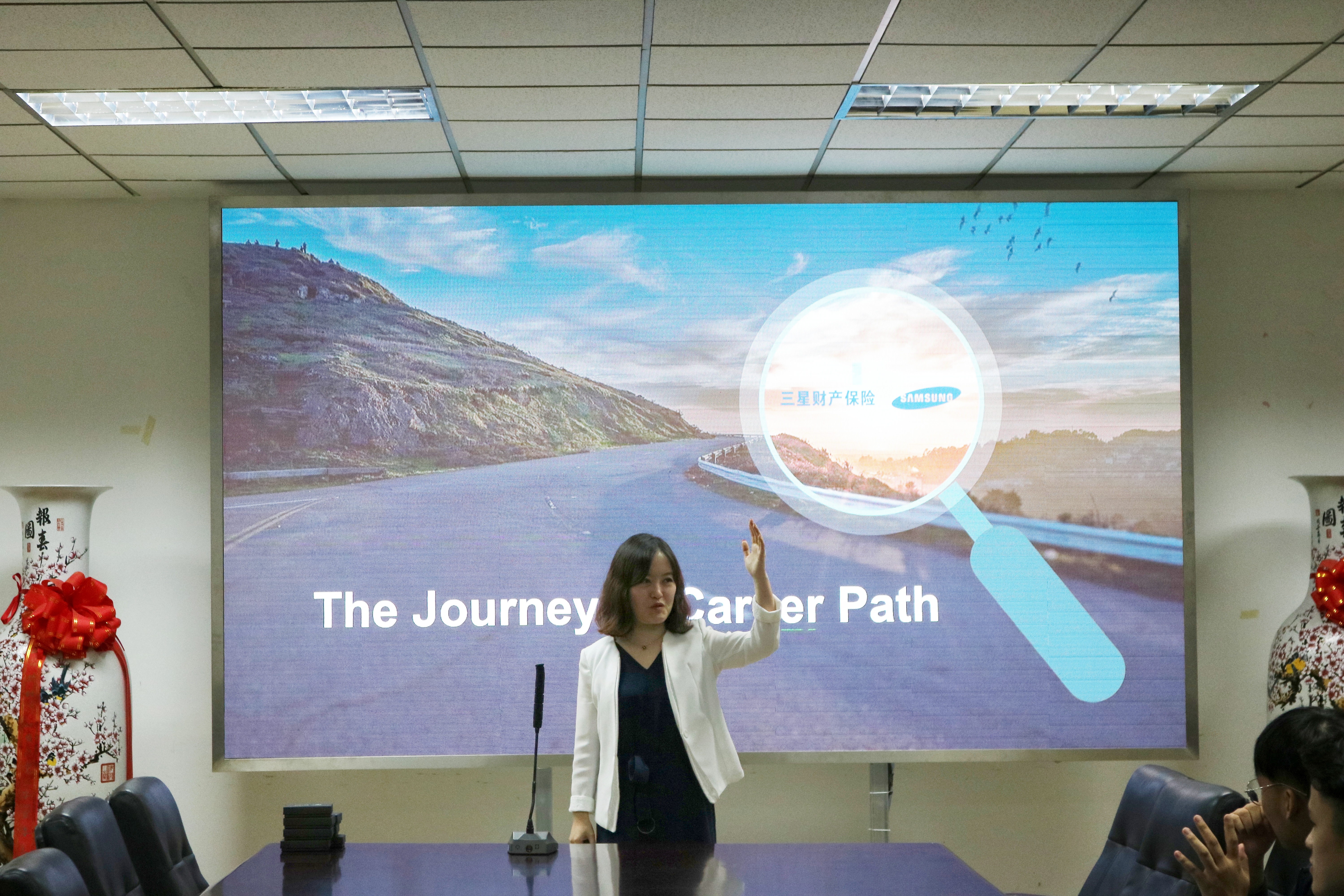 招聘经理胡宇飞指出,三星财产保险有限公司是一个全球化的保险集团,拥有悠久的历史和丰厚的非凡娱乐官网,在中国发展前景良好。随后他概括说明了该公司校招的流程,提醒有意竞选的同学提前做好准备。