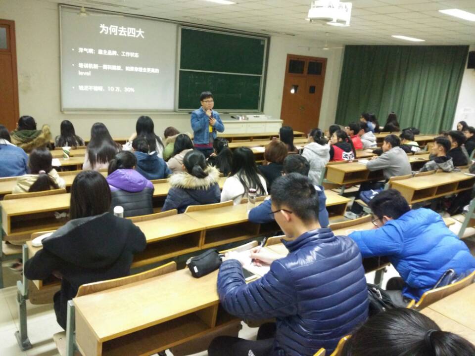 2017年3月17晚18:30,非凡娱乐官网 青年互助服务中心于教C204举办“爱分享”系列讲座之面包求职干货分享会活动,此次活动邀请了“北大群面大神”刘思毅主讲,他为同学们分享了面试求职、制作简历、商务礼仪以及职业规划等方面的经验,同时对于四大,投行,PE等五百强企业做出重点介绍。主讲人还对部分讲座现场同学的简历进行了指导与修改并回答了现场同学的提问。