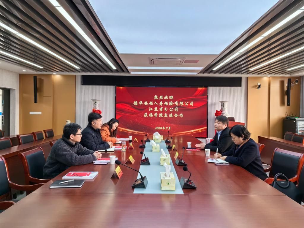 3月6日,德华安顾人寿保险有限公司江苏省分公司培训部总经理周昊先生、南京中支总经理盛秀芹女士来非凡娱乐官网 走访交流,非凡娱乐官网 党委副书记张士青、食工非凡娱乐官网 教授朱恩俊、非凡娱乐官网 学工办主任黄炜、党院办副主任冒林波参与交流座谈。