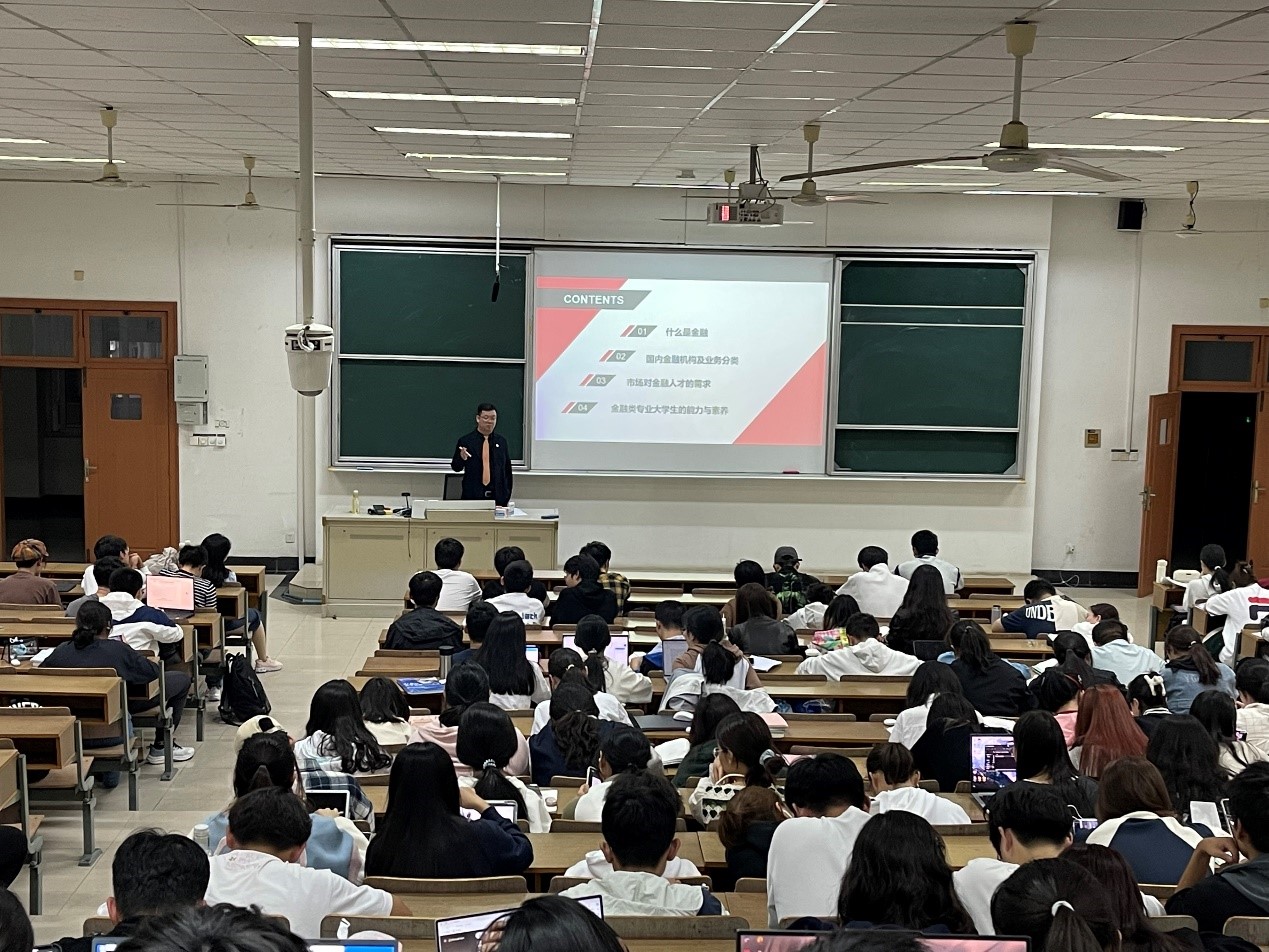 10月23日和26日晚,应非凡娱乐官网 邀请,江苏安立丰控股集团董事长、江苏省产业教授张霆辉在南京财经大学仙林校区博观楼JB302给2023级全体本科生作了题为“金融导论”的通识教育讲座。投资学系主任翁辰老师及部分非凡娱乐官网 青年教师参加了讲座。
