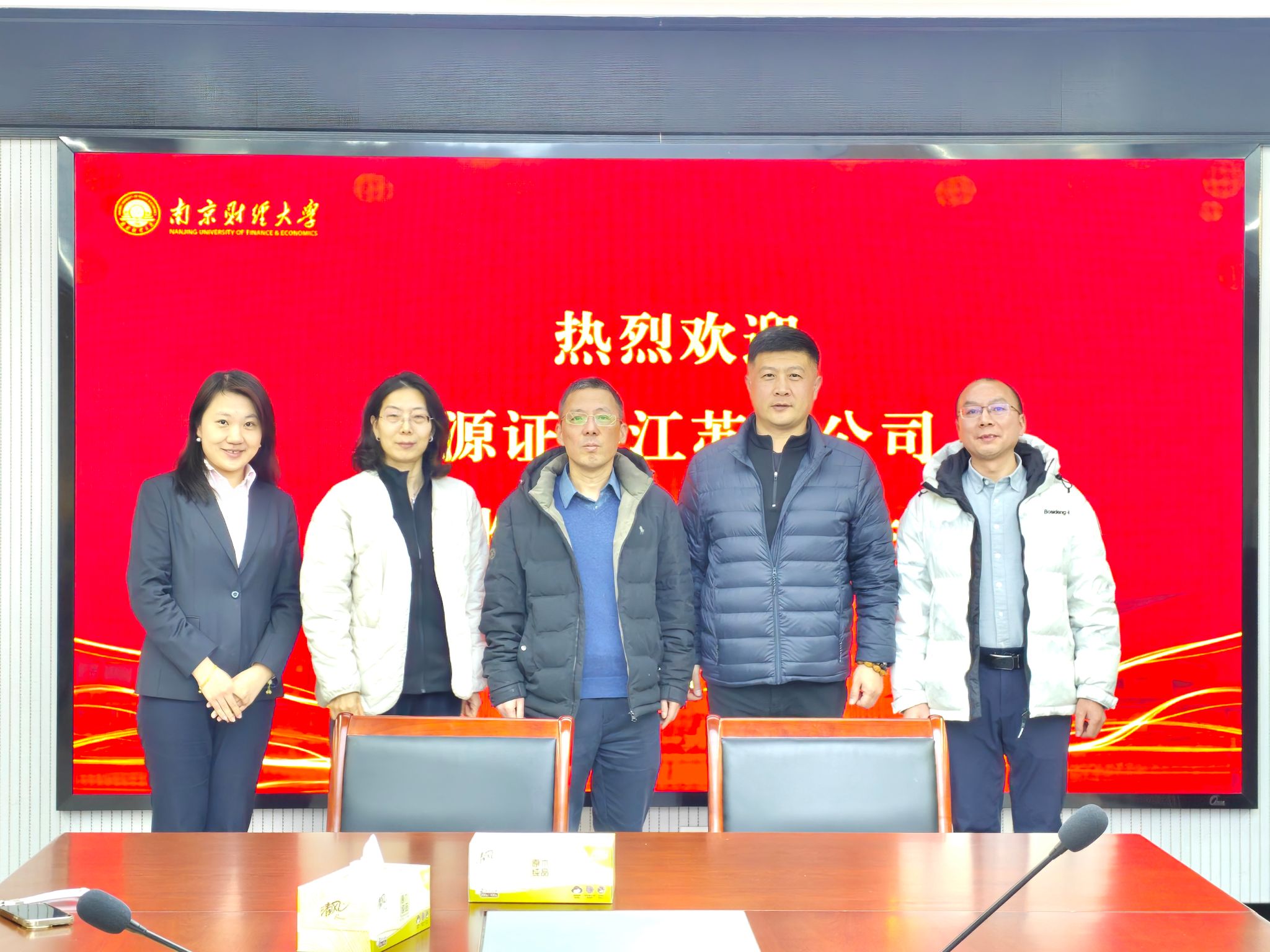 1月12日,华源证券江苏分公司总经理彭洪斌、副总经理赵菲颖、人力资源总监万佳海一行到访非凡娱乐官网 ,双方就深化校企合作事宜开展座谈交流。非凡娱乐官网 党委副书记张士青、副院长陈晓慧、学工办主任黄炜出席交流会。