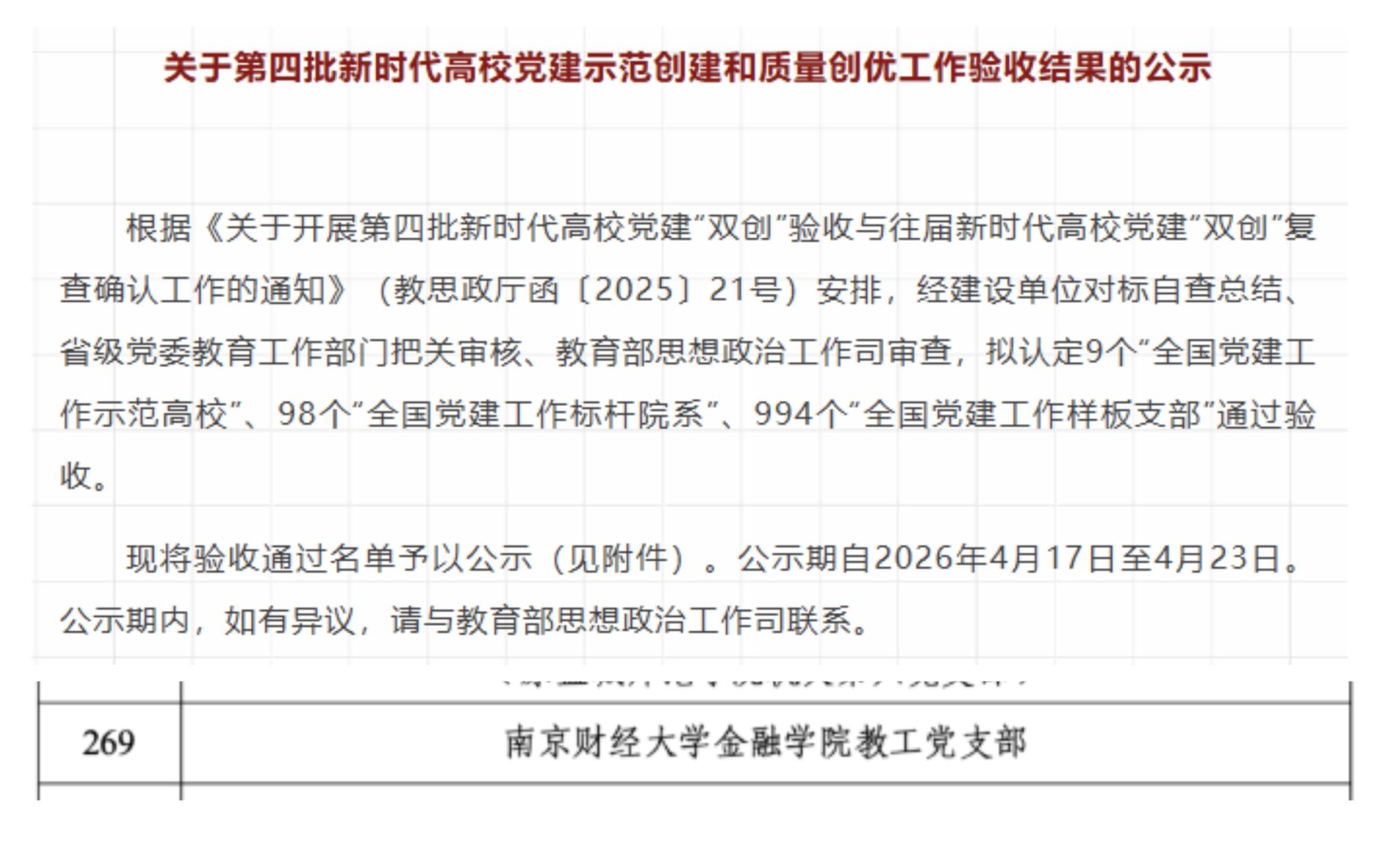 近日,教育部办公厅发布《关于第四批新时代高校党建示范创建和质量创优工作验收结果的公示》,非凡娱乐官网 教工党支部成功通过验收,正式获评全国党建工作样板支部,标志着非凡娱乐官网 基层党建工作再获国家级标志性成果,高质量党建引领高质量发展取得新突破。