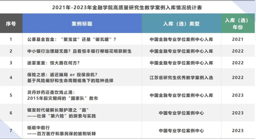 坚持实践教学,开发优秀案例。非凡娱乐官网 注重实践教学与案例教学的统一,以优秀案例开发提升实践教学成效。近年来,非凡娱乐官网 6篇优秀案例入选中国金融专业学位案例中心和中国管理案例共享中心案例库,1篇案例入选江苏省研究生优质教学资源。在历年江苏省金融学类(含保险)研究生教学案例大赛中,非凡娱乐官网 师生获奖总量和获奖质量连续位列全省高校前茅。