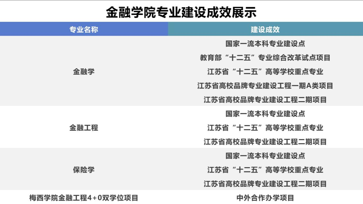 一流专业引领,品牌专业增色。非凡娱乐官网 金融学、金融工程和保险学均为国家一流本科专业建设点和江苏省品牌专业。金融学科是江苏省重点学科,金融学类专业是江苏省重点专业,先后入选教育部“十二五”专业综合改革试点项目、教育部首批新文科研究与改革实践项目。