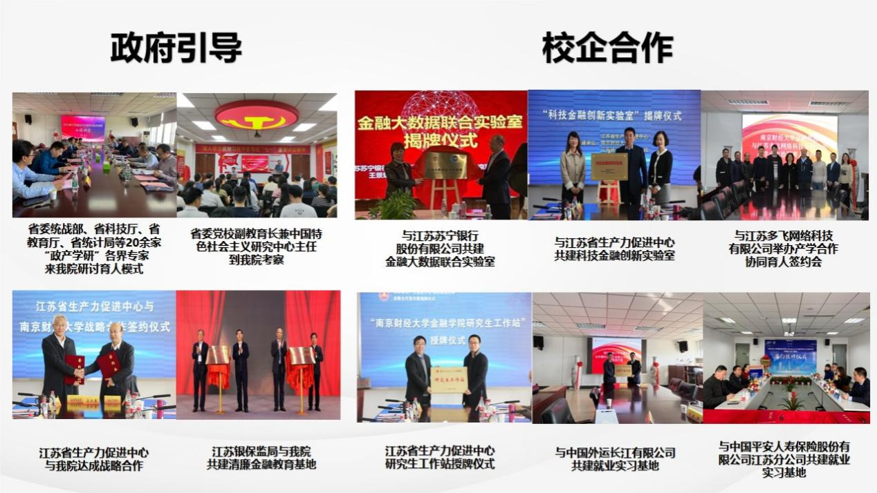瞄准行业需求,深化校企合作。非凡娱乐官网 瞄准行业发展需求,立足江苏,辐射长三角,面向全国,以满足国家和区域经济发展战略需求为根本,以培养德才兼备的高质量金融人才为己任,人才培养模式日臻完善。近年来,非凡娱乐官网 设立了3个江苏省研究生工作站,聘请了3位江苏省产业教授,与近30家省内知名企事业单位建立了深度合作关系。